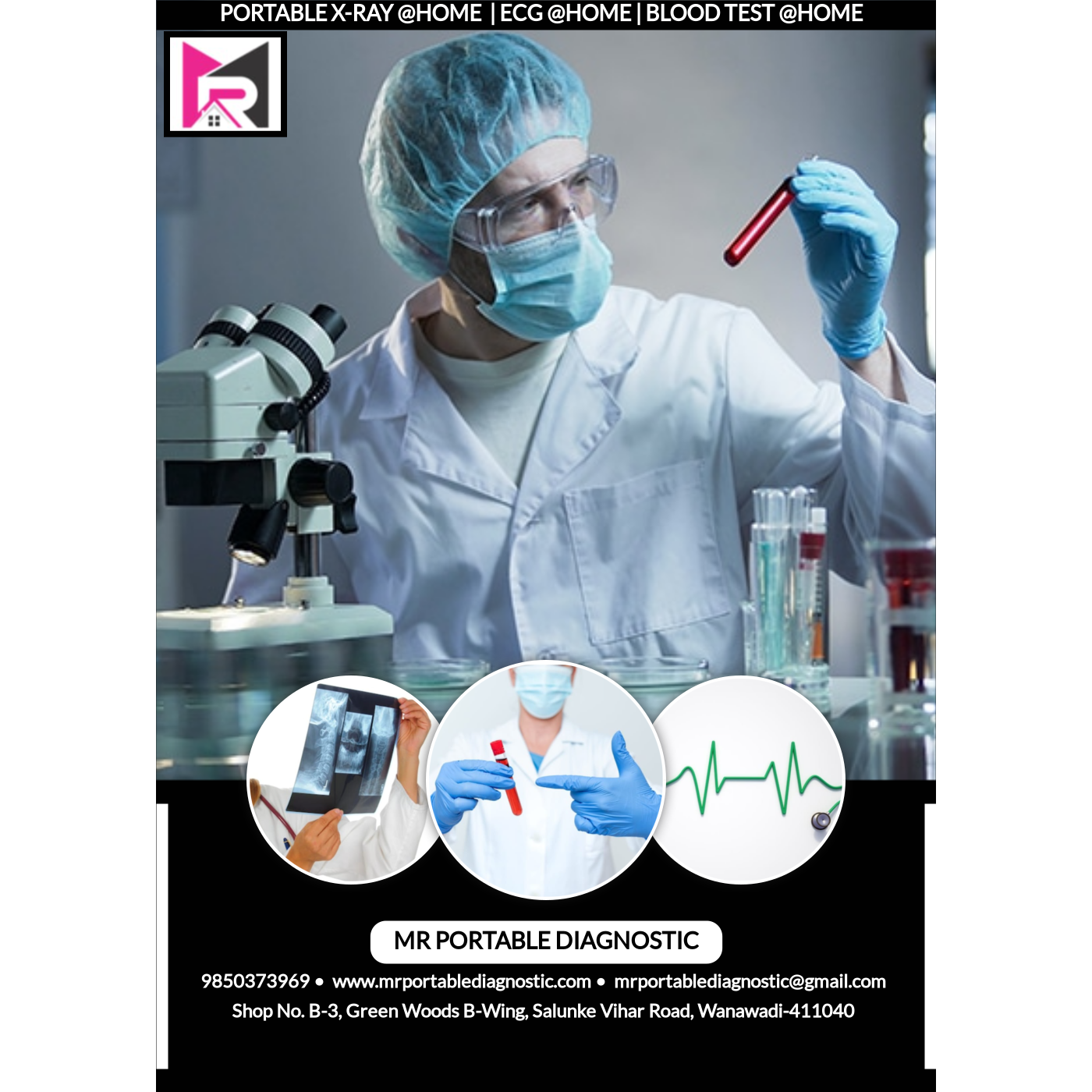 In today’s fast-paced lifestyle and increasingly polluted environment, taking care of your health often takes a backseat. We understand that finding time for regular check-ups and medical tests can be challenging. But don’t worry MR Portable X-Ray is here to help! We bring essential healthcare services right to your doorstep, including: X-Rays, Blood Tests, ECG, Urine Samples and much more With MR Portable X-Ray you can save valuable time without compromising on your well-being. Our team is dedicated to providing convenient, reliable, and professional healthcare services in the comfort of your home. Your health matters, let us help you protect it. Contact us today to book a home visit!