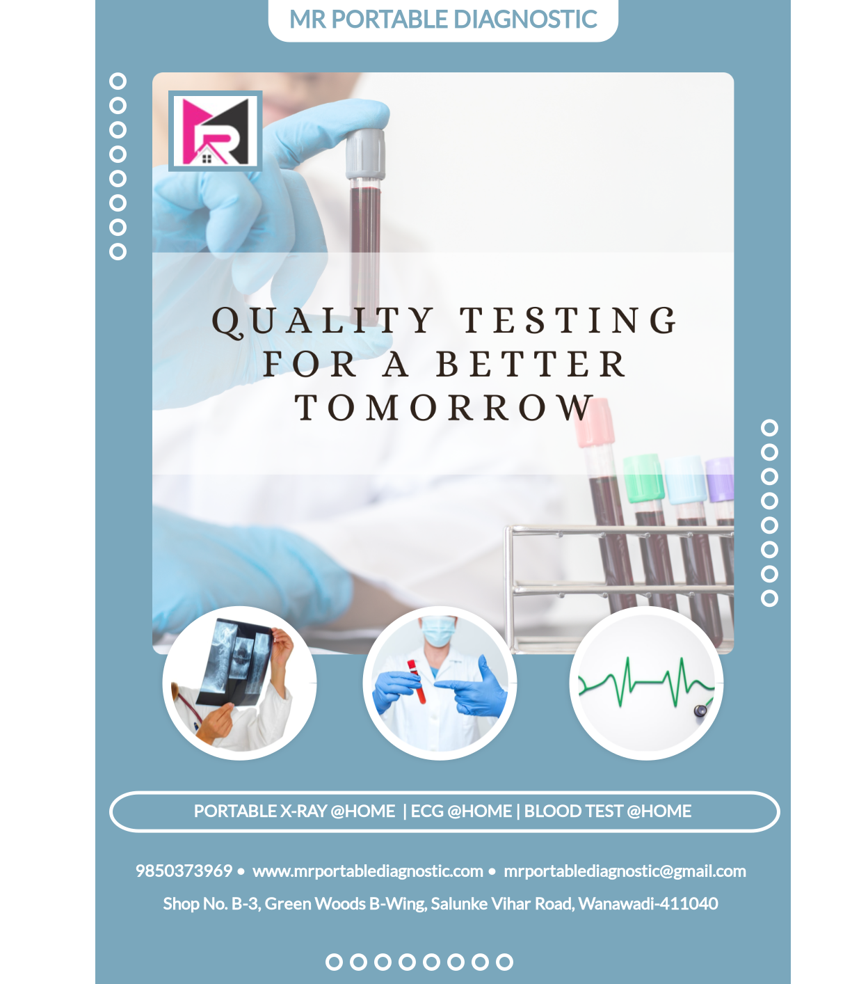 MR Portable X-Ray – Convenient, Accurate, Trusted—Healthcare Where You Are. MR Portable X-Ray quality care at your doorstep, Skip the travel. Skip the wait. Get the medical diagnostics you need in the comfort of your home. At MR Portable X-Ray, we bring professional, hospital-grade diagnostics directly to you. From digital X-rays and ECGs to blood and urine testing, our experienced medical team ensures accurate, fast, and reliable results all without the hassle of visiting a clinic or hospital. Book your at-home appointment today and experience quality care on your schedule.