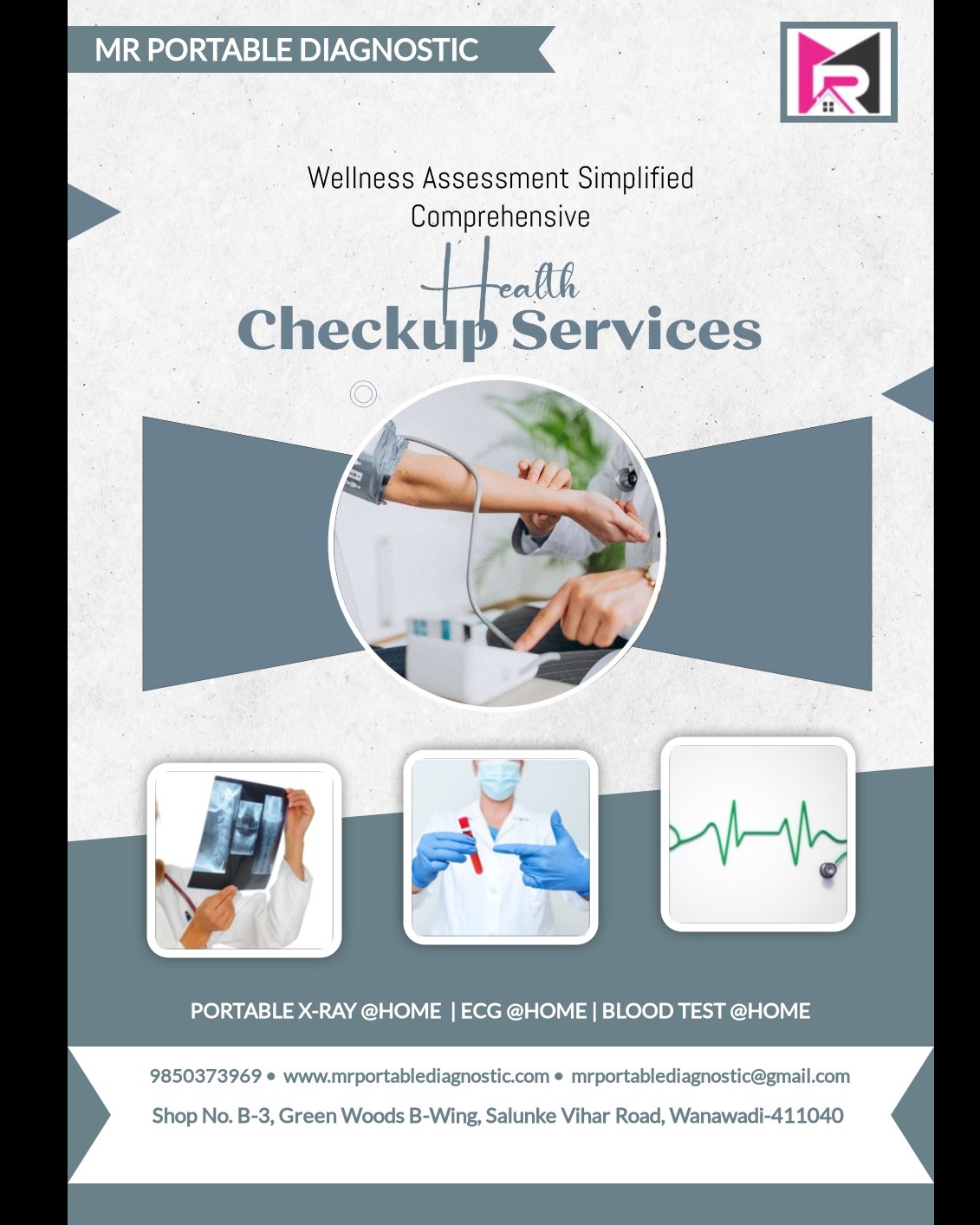 Experience the convenience of professional medical diagnostics in the comfort of your home. At MR Portable X-Ray, we offer high-quality digital X-rays, ECGs, and a wide range of healthcare services across Pune and the PCMC region. Whether you are facing mobility challenges, recovering from illness, or simply prefer home based care, we are just a call away. Our team is equipped to deliver accurate, reliable, and timely diagnostic services wherever you are. Why choose us? Trusted professionals with years of experience Advanced digital equipment for precise results Fast, efficient, and patient friendly service Convenience and comfort of home based healthcare Call us today for stress-free diagnostics at your doorstep. Your health, our priority.